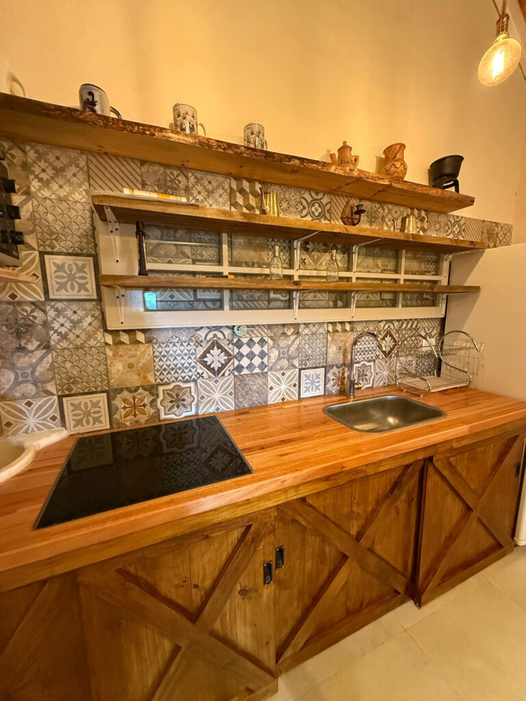 Gemeinsam mit einem befreundeten Architekten verwandelten wir den alten Stall in ein warmes, liebevoll gestaltetes Refugium. Jedes Detail —das Holz, die Gestaltung des Gartens, die ruhigen Sitzecken— wurde bewusst ausgewählt, um die ursprüngliche Atmosphäre und die Verbundenheit zur Natur zu bewahren. Unser Ziel war es, einen Ort zu schaffen, an dem Ruhe, Authentizität und ländlicher Charme spürbar bleiben.